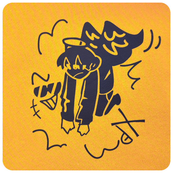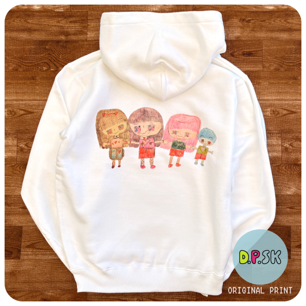 紙に黒ペンで描かれた絵の画像をご入稿いただき白でプリントしました。